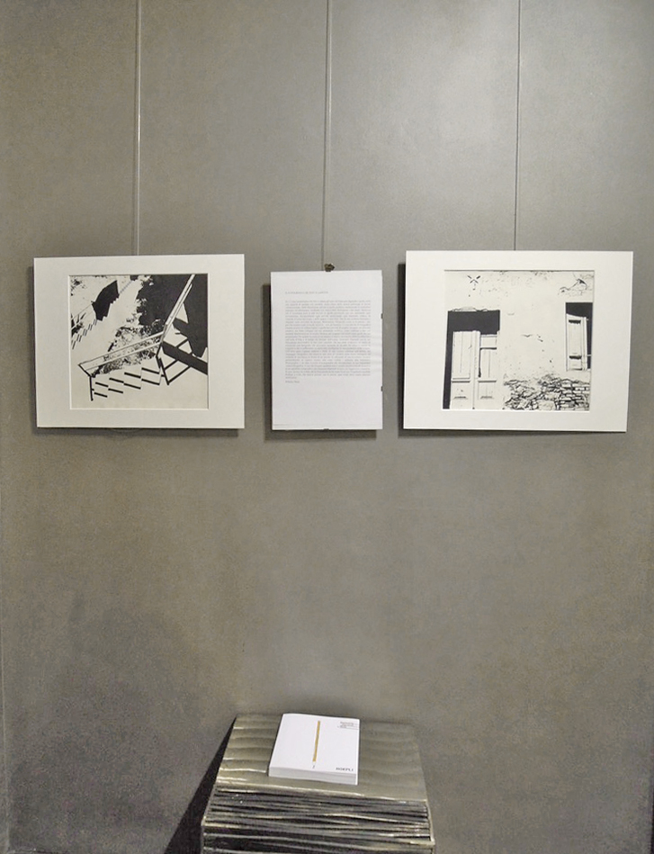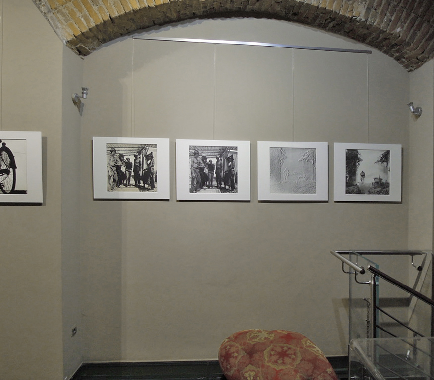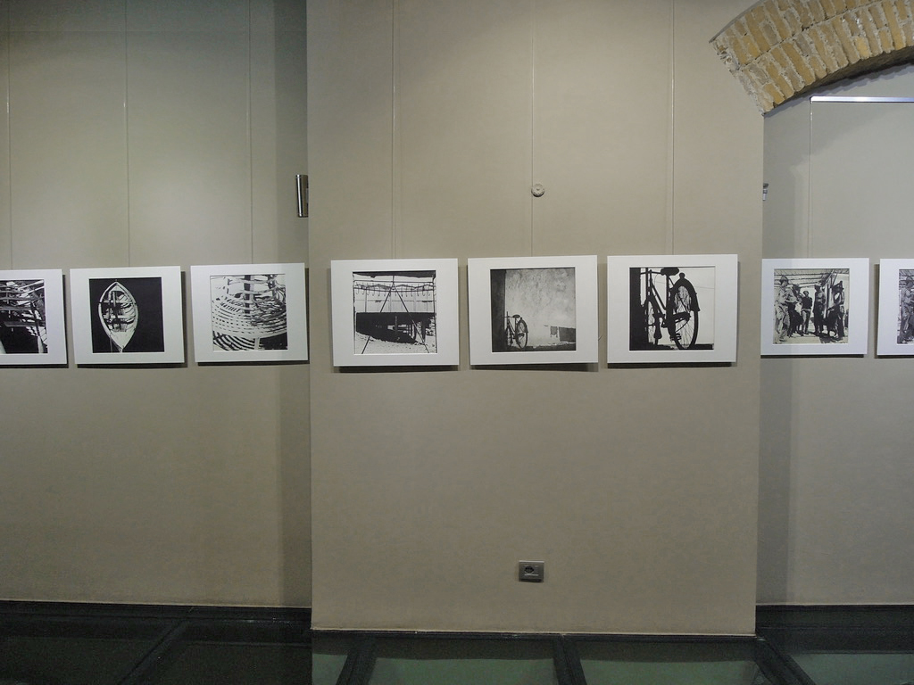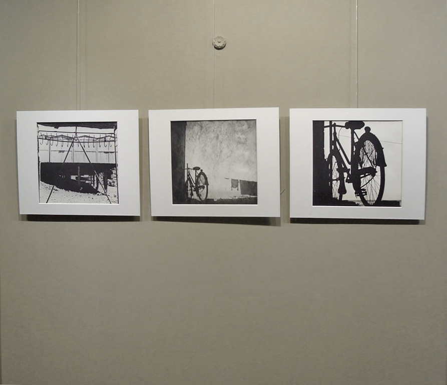 Dall’altra parte l’autore esibisce i frutti di una ricerca continua nell’ambito del linguaggio fotografico che sfocia in una serie di variabili della stessa immagine (la struttura di una barca, la forma di un’ancora, la silhouette di una bicicletta) ottenute personalmente in camera oscura.