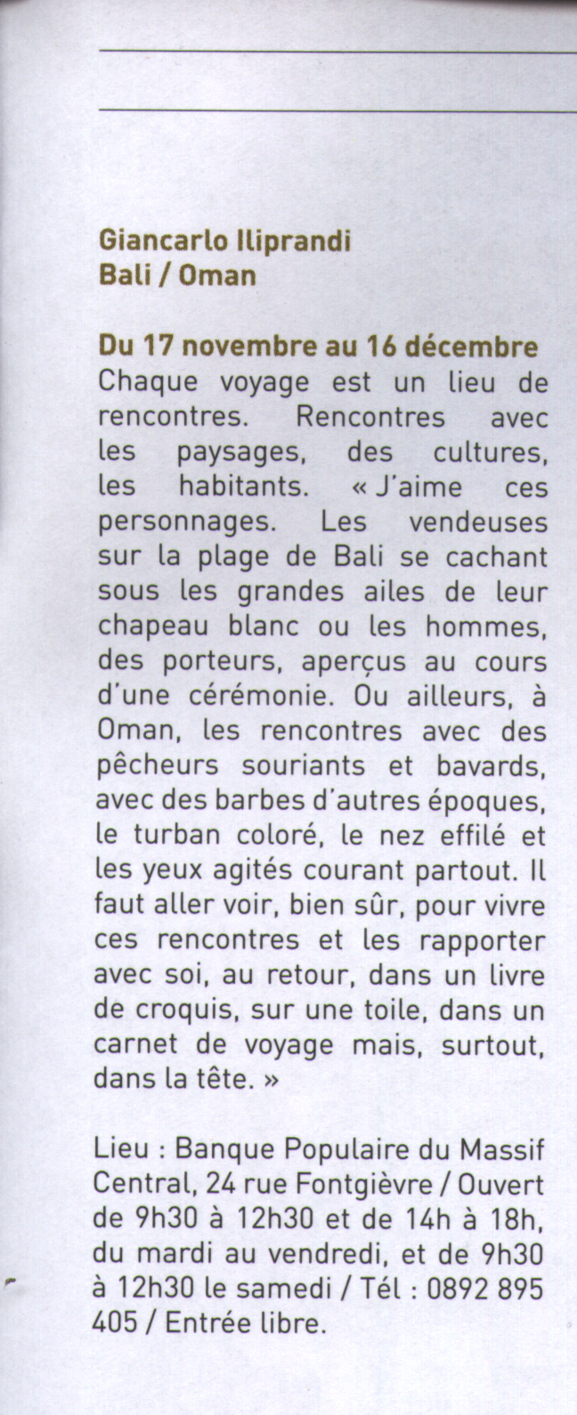 Mostra personale presso la Banque Populaire du Massif Central, Clermont-Ferrand. Novembre/Dicembre.